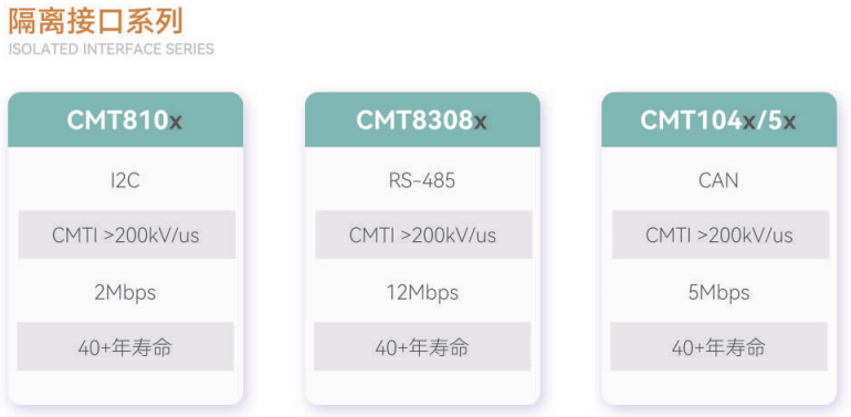 CMT104X、CMT810X、CMT8308X等隔离接口芯片通常被应用于PCS与能量管理系统(EMS)之间、EMS与电力监控系统之间、BMS与EMS之间的通信电路中,用以确保确保在复杂电磁环境下,不同子系统间的数字信号(如SPI、I2C、UART等接口信号)能准确、可靠地传输,避免信号失真、干扰和误码。