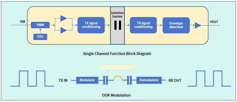 电容耦合数字隔离器信号传输过程示意图(单通道)