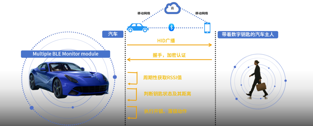 现阶段,基于BLE技术实现的数字车钥匙是市场的主流方案之一,其主要通过加密的数字证书实现身份认证,支持解锁、启动、授权他人使用等功能,可完全摆脱对物理钥匙的依赖。